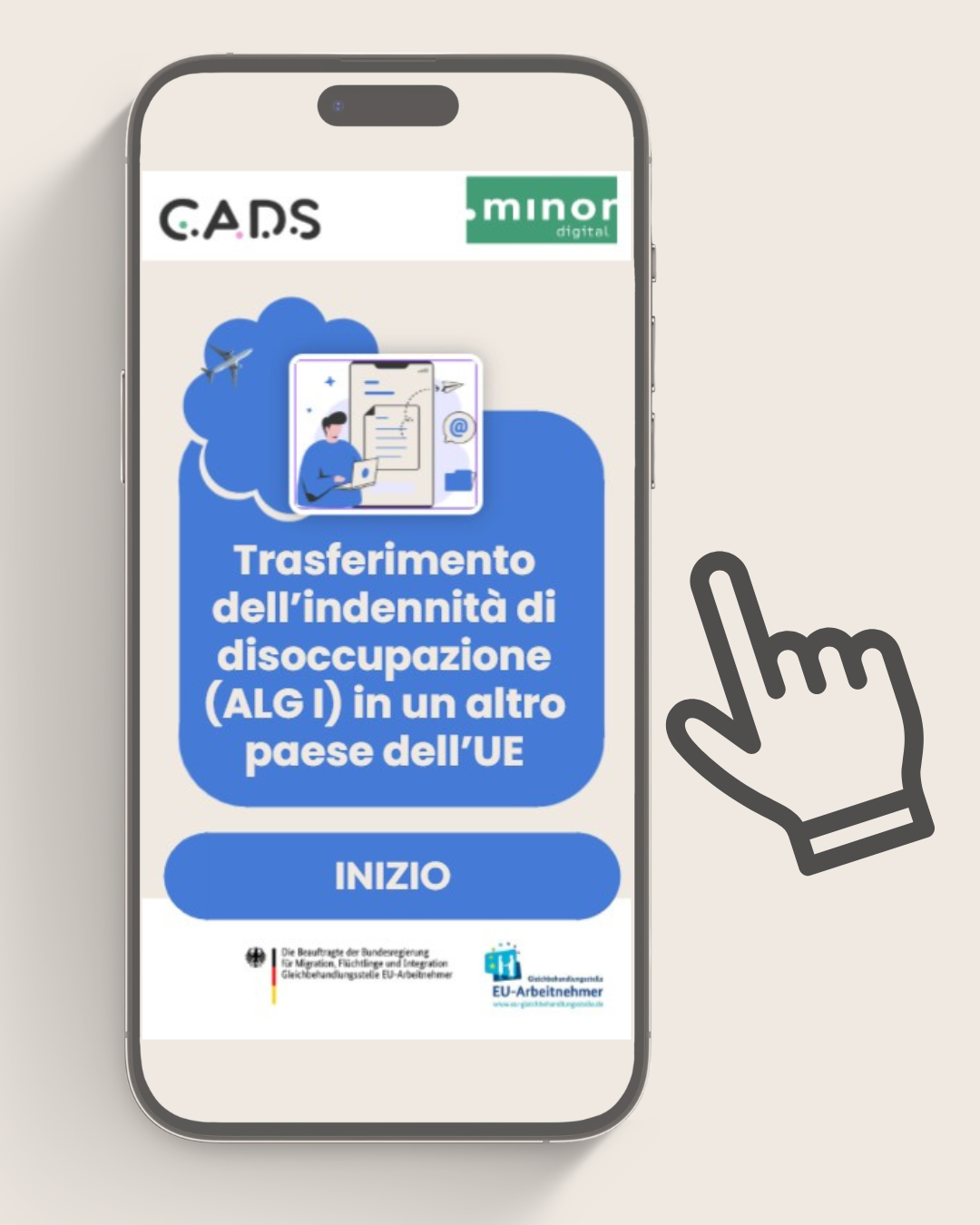 Diese Informationsangebote sind Teil des Projektes  CADS – Community Advisors – Digital Streetwork für EU-Beschäftigte in Deutschland. Die Gleichbehandlungsstelle EU-Arbeitnehmer der Beauftragten der Bundesregierung für Migration, Flüchtlinge und Integration zugleich Beauftragten der Bundesregierung für Antirassismus hat die Aufgabe, EU-Zugewanderte bei der Wahrnehmung der Rechte, die ihnen im Rahmen der Arbeitnehmerfreizügigkeit in Deutschland zustehen, zu unterstützen. Sie fördert das Projekt, CADS – Community Advisors – Digital Streetwork für EU-Beschäftigte in Deutschland, das von Minor – Digital durchgeführt wird.