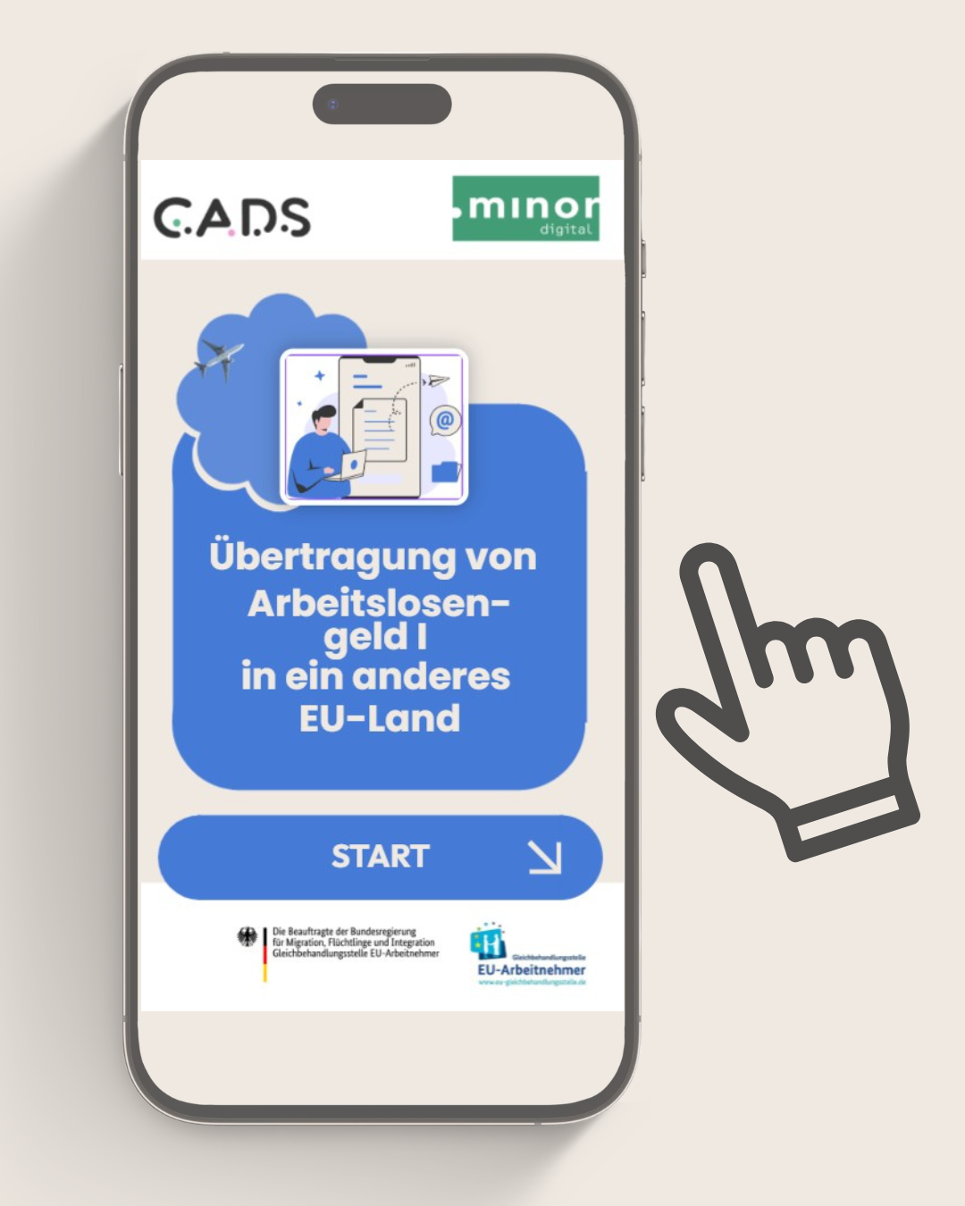 Diese Informationsangebote sind Teil des Projektes  CADS – Community Advisors – Digital Streetwork für EU-Beschäftigte in Deutschland. Die Gleichbehandlungsstelle EU-Arbeitnehmer der Beauftragten der Bundesregierung für Migration, Flüchtlinge und Integration zugleich Beauftragten der Bundesregierung für Antirassismus hat die Aufgabe, EU-Zugewanderte bei der Wahrnehmung der Rechte, die ihnen im Rahmen der Arbeitnehmerfreizügigkeit in Deutschland zustehen, zu unterstützen. Sie fördert das Projekt, CADS – Community Advisors – Digital Streetwork für EU-Beschäftigte in Deutschland, das von Minor – Digital durchgeführt wird.
